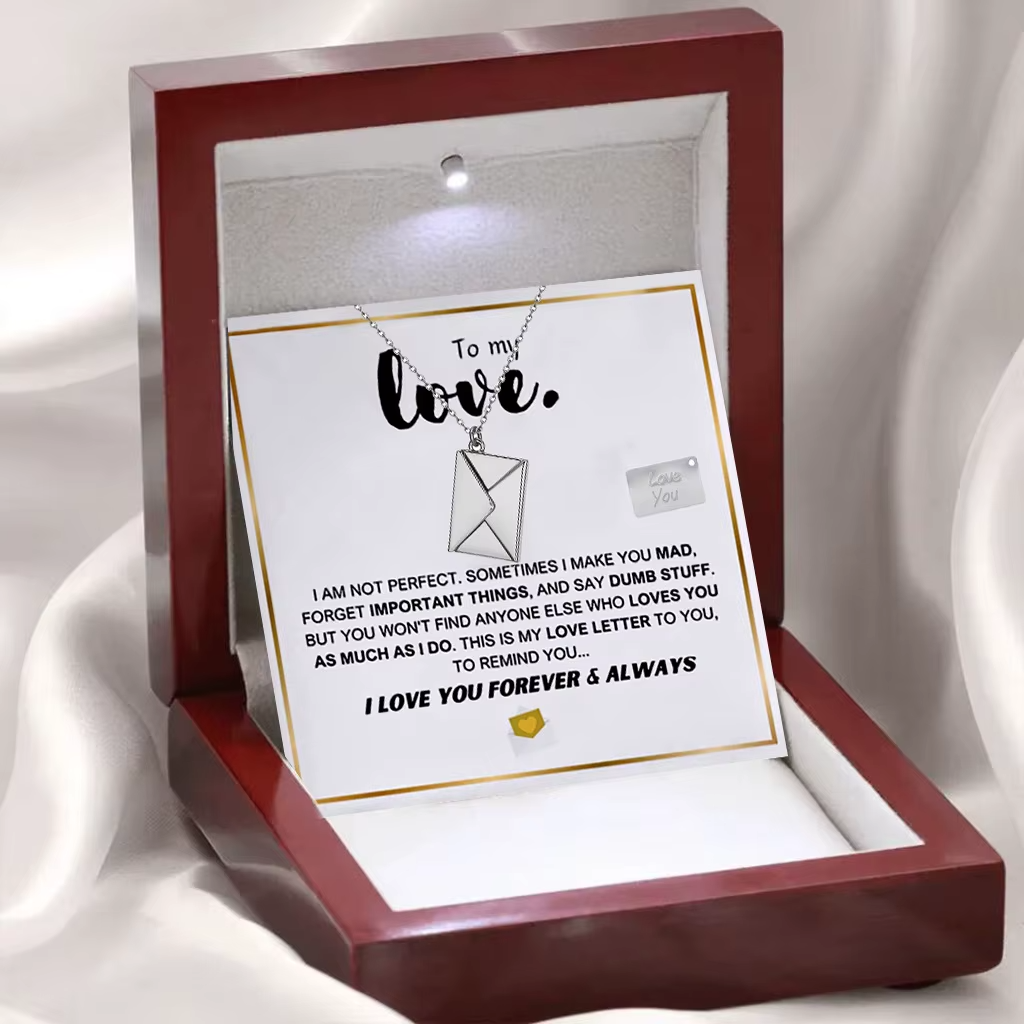 Este collar de belleza seductora presenta un pequeño colgante en forma de sobre y es el regalo perfecto y único para esa persona especial en estas fiestas.